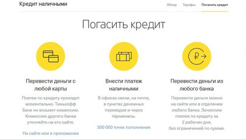 Для выплаты кредита клиенты используют интернет-банк, мобильное приложение, дебетовые карты «Тинькофф», онлайн-банкинг других финансовых организаций. Интернет-банкинг позволяет совершать оплату прямо из дома.