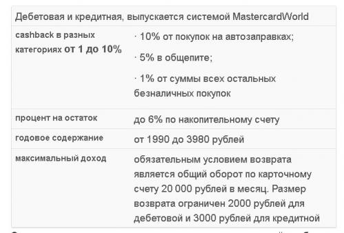 Это предложение выделяется среди конкурентов: высокий кешбек на автозаправках, хороший бонус при посещении кафе и ресторанов и возможность получать 1% от всех остальных покупок делает ее удачным приобретением для семей, владеющих автомобилем.