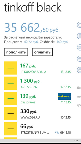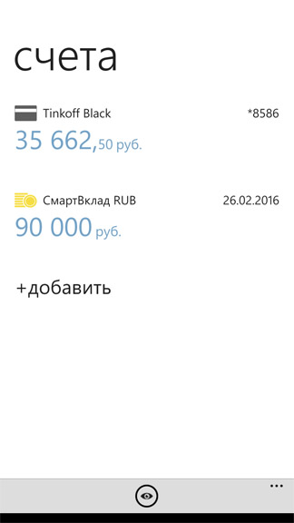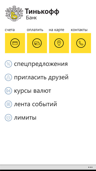 Мобильное приложение Тинькофф Банка на Windows Phone